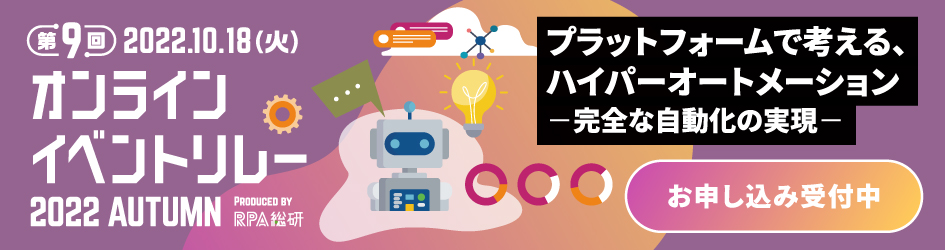 株式会社デジタルワークフォースでは、2022年10月18日(火)14:00~14:40にRPA総研が主催するオンラインイベントで講演いたします。