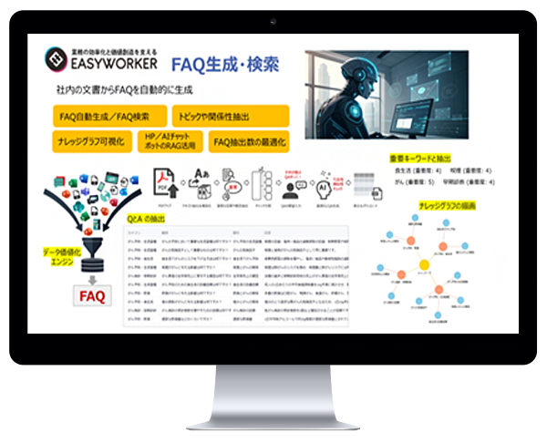 社内に蓄積された様々な情報ファイルの内容から重要情報となるトピックを抽出し、FAQを自動生成します。