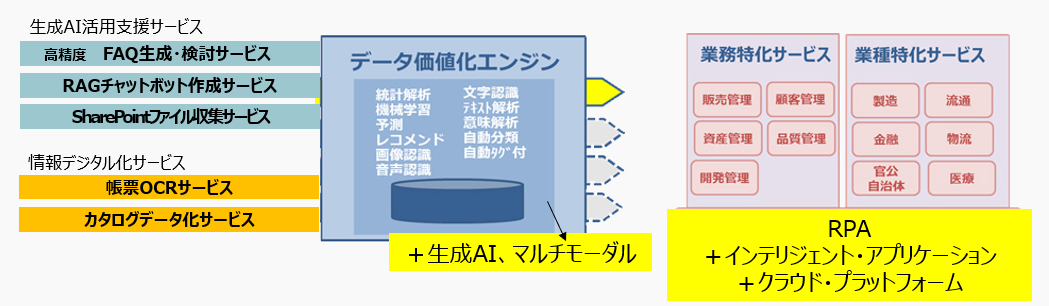 EASYWORKER/カタログデータ化サービスでは、独自のOCRエンジン及び生成AIを駆使して、様々なカタログフォーマットを共通テーブルにデータ化を行います。また、「データ化+検索システム」の組み合わせ構築により、直ちに業務でデータ利用できる環境の準備をご支援します。